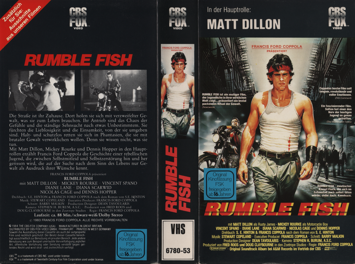 Schmale Box mit "CBS / FOX VIDEO"-Prägungen am oberen Rand und dem eingeprägten CBS/Fox-Logo innen sowie mit einem Einleger aus stabiler Pappe.Im Besitz von 2 Benutzern.