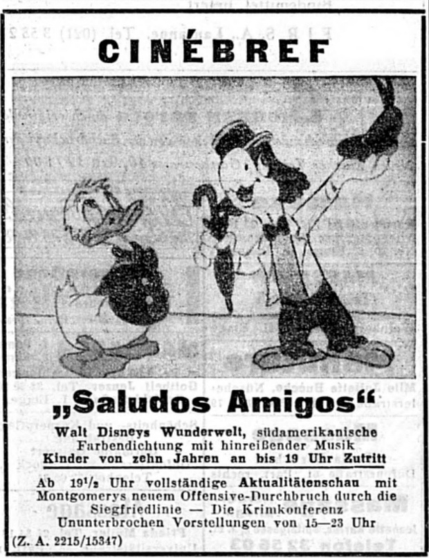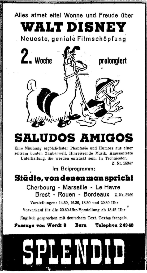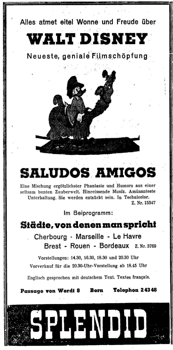 Lief im Dezember 1943 auch in eingedeutschter Sprachfassung , sowie im April 1944 in Genf in französischer Synchronisation
