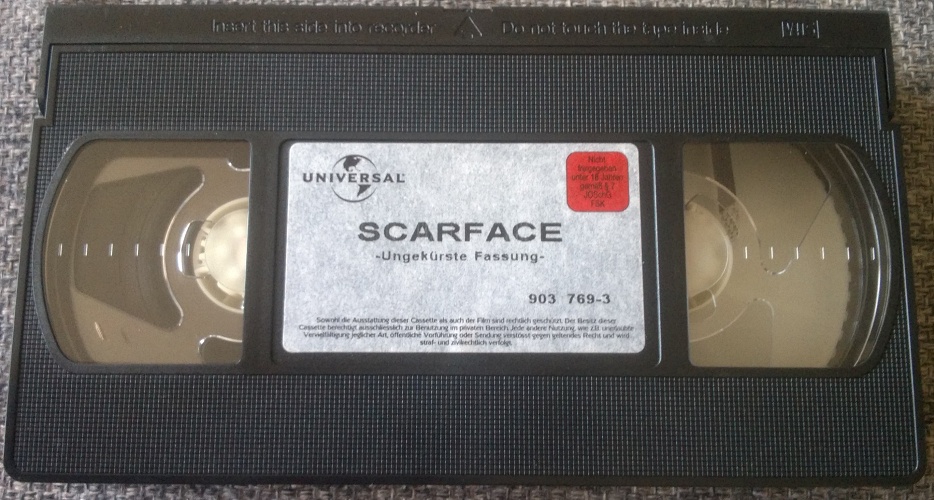 "Scarface" ist 2001 von Universal leicht gekürzt auf VHS erschienen (Kettensägen-Szene). Es ist ein großer Einleger der fälschlicherweise auf die ungekürzte Fassung hinweist.Im Besitz von 14 Benutzern.