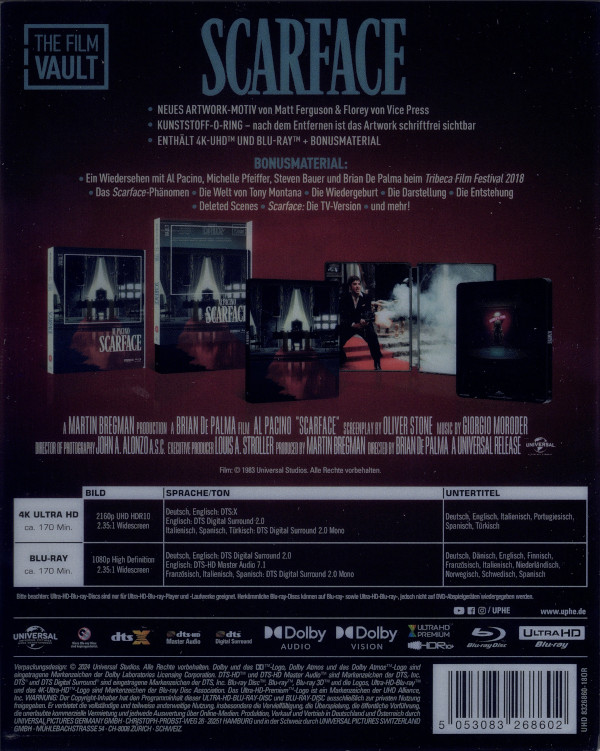 Das Steelbook wurde für die „The Film Vault“-Reihe mit Artwork von Matt Ferguson & Florey von Vice Press mit einer abnehmbaren Kunststoffhülle (O-Ring) herausgebracht. Auf deren Vorderseite steht der Filmname, auf der Rückseite eine Inhaltsangabe und technische Details zum Film. Die enthaltenen Discs sind identisch mit diesen.Im Besitz von 5 Benutzern.