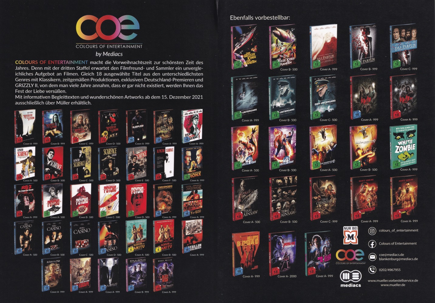 FSK-Logo, Müller-Logo und COE-Sticker befinden sich auf der Außenfolie.
