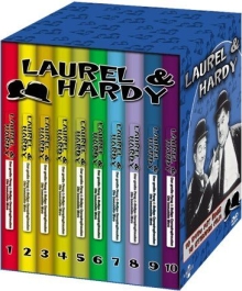 Schicke, erste 10er Box in Blau mit der Überschrift: „Laurel & Hardy – 10 DVDs mit über 13 Stunden Film“ enthält (in der nummerierten Reihenfolge) folgenden Titeln: