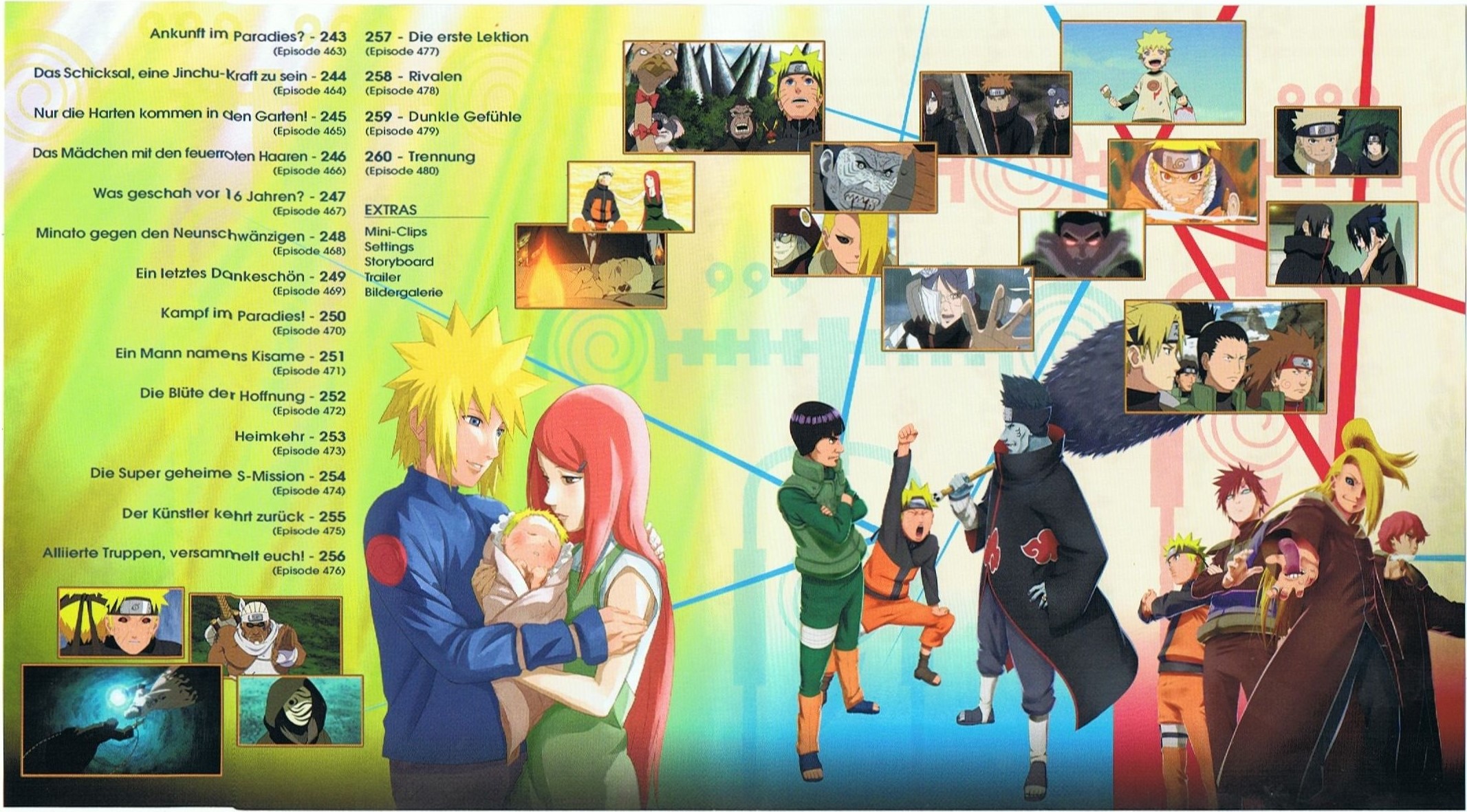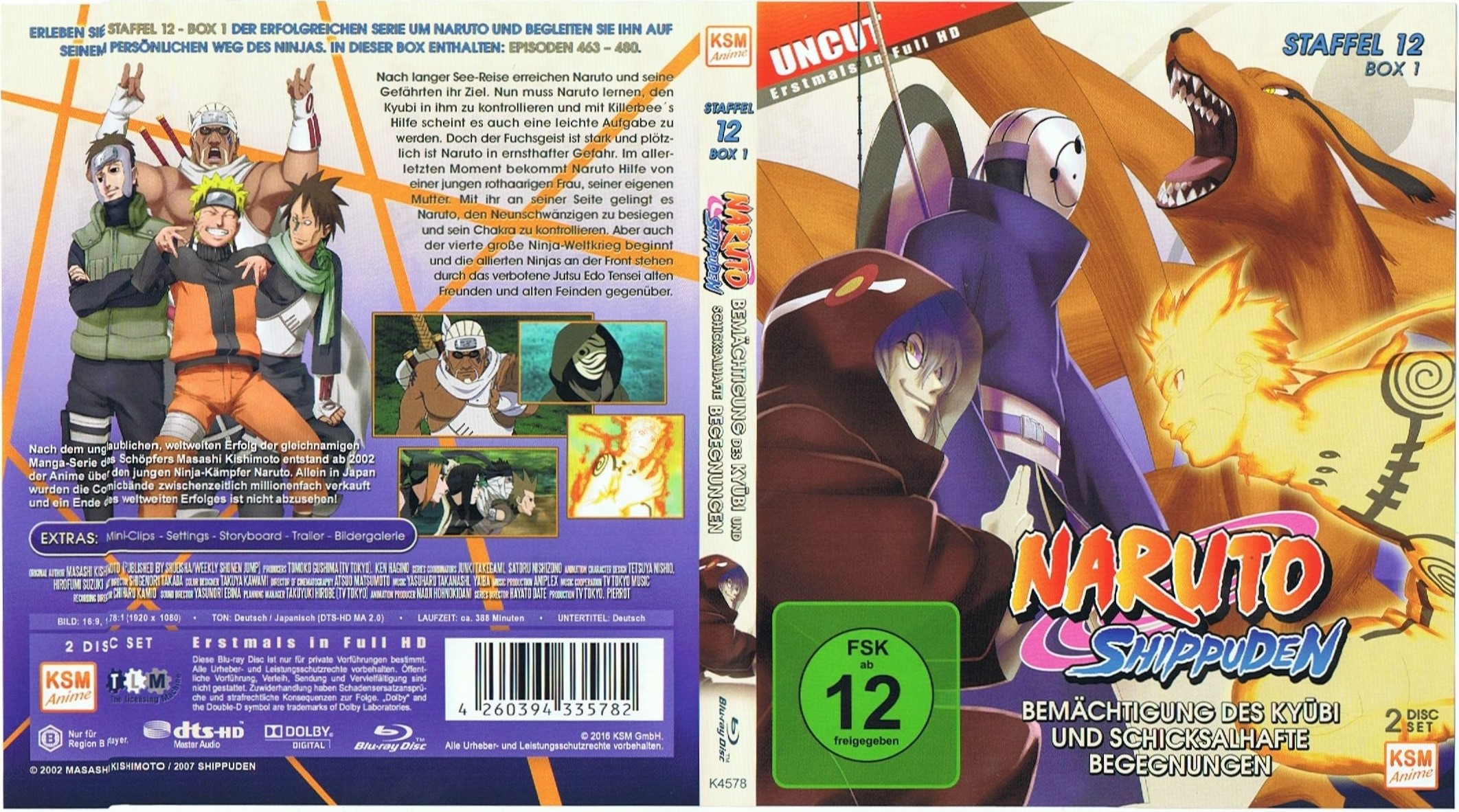 Staffel 12 - Box 1 "Bemächtigung des Kyûbi und Schicksalhafte Begegnungen" mit den Episoden 243 - 260 (463 - 480) auf 2 BDs.Im Besitz von 3 Benutzern.