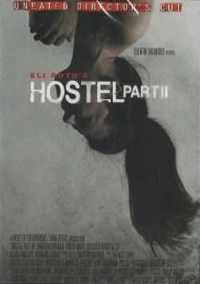 Die Menüauswahl ist ebenfalls auf Englisch gehalten, unterhalb dessen steht 'Hostel Part II', darunter in auffallendem weiß gehalten und 'Unrated'.