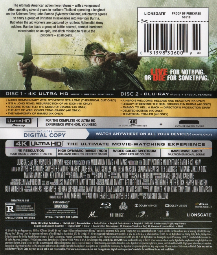 Das Set beinhaltet eine 4K UHD Blu-ray, eine Blu-ray (siehe auch Anmerkung unten) und einen Code für eine Digital Copy (movieredeem.com).