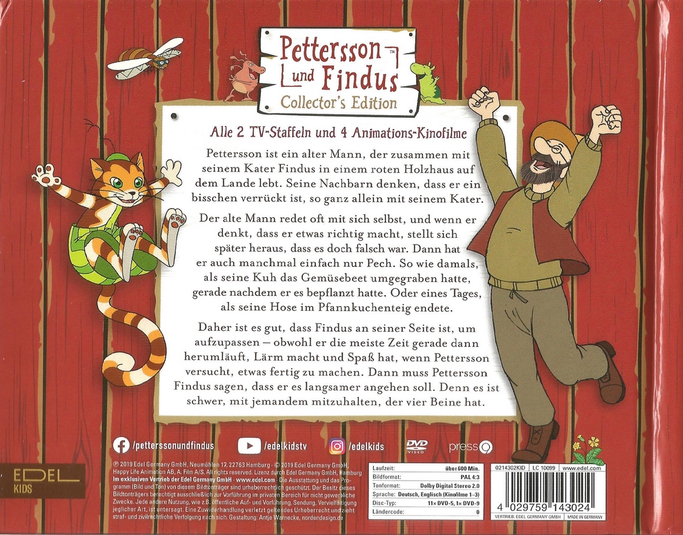 Die DVDs stecken in festen Pappseiten. Auf diesen stehen Infos zu beinhalteten Folgen der jeweiligen DVD und kleine Lernspiele für Kleinkinder.