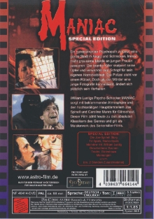 Maniac gibt's jetzt auch in einer normalen Amaray Hülle ohne Limitierung im Astro Layout. Es steht, wie auch bei der limitierten ASTRO TIN, "Special Edition" drauf. Allerdings wurde diese VÖ, laut Astro-Chef Oliver Krekel, nicht von Astro in Umlauf gebracht