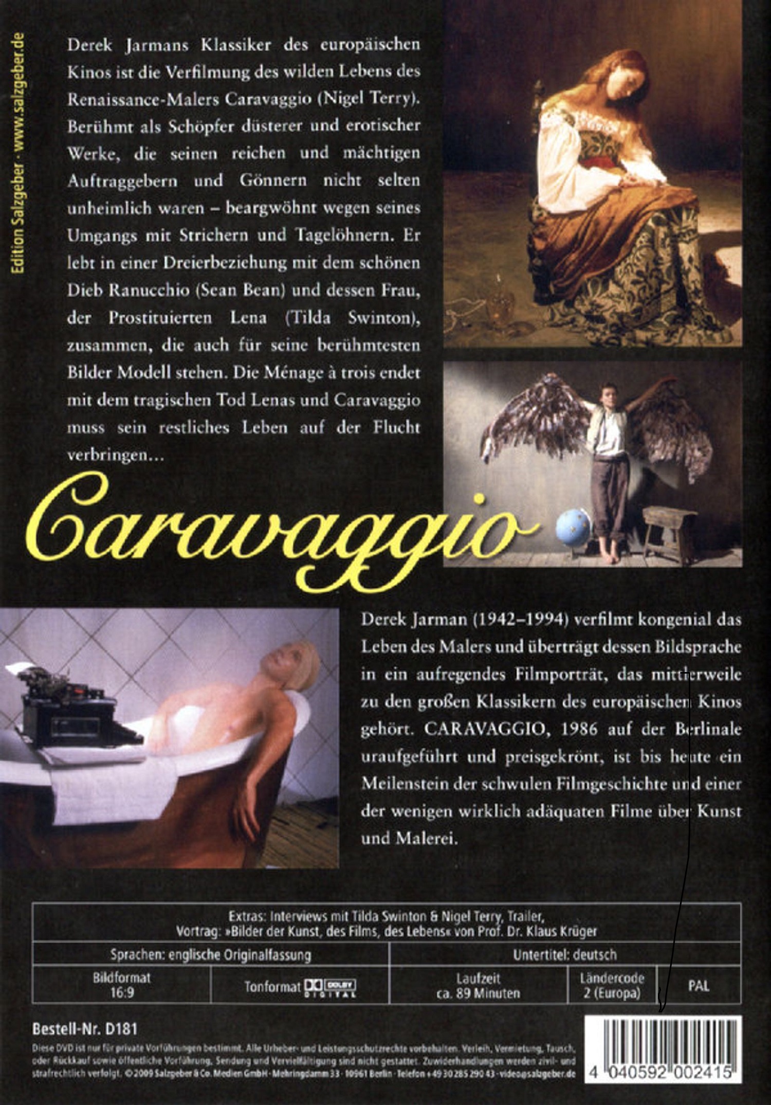 8-seitige Farbbroschüre mit Infos zu Caravaggio und Jarman liegt bei