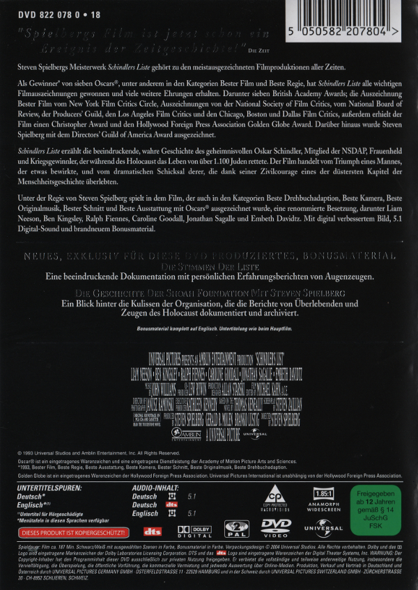 Diese Dokumentation ist Teil des Bonusmaterials von Schindlers Liste und befindet sich auf der 2. DVD der Universal Neuauflage.Im Besitz von 4 Benutzern.