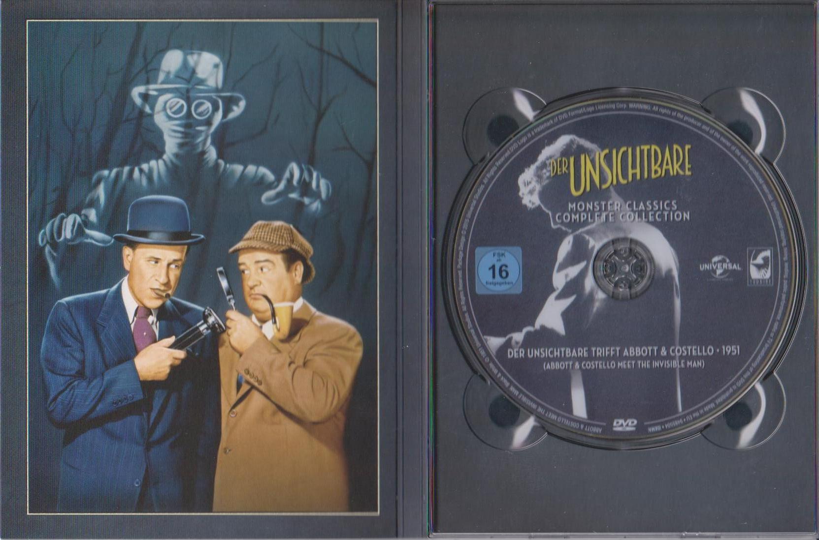 Zusammen mit allen fünf Klassikern der 30er- und 40er-Jahre sowie die Komödie "Der Unsichtbare trifft Abbott & Costello" in sechs Digipacks, untergebracht in einer stabilen aufklappbaren Box. Ausserdem enthalten ist ein 76-seitiges sehr informatives Booklet