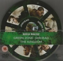 Runde Tin-Dose, die auf einer transparenten Kunststoffhalterung steht, und drei DVDs enthält, die jeweils durch dünne Schaumstoffscheiben getrennt sind.Im Besitz von 1 Benutzern.