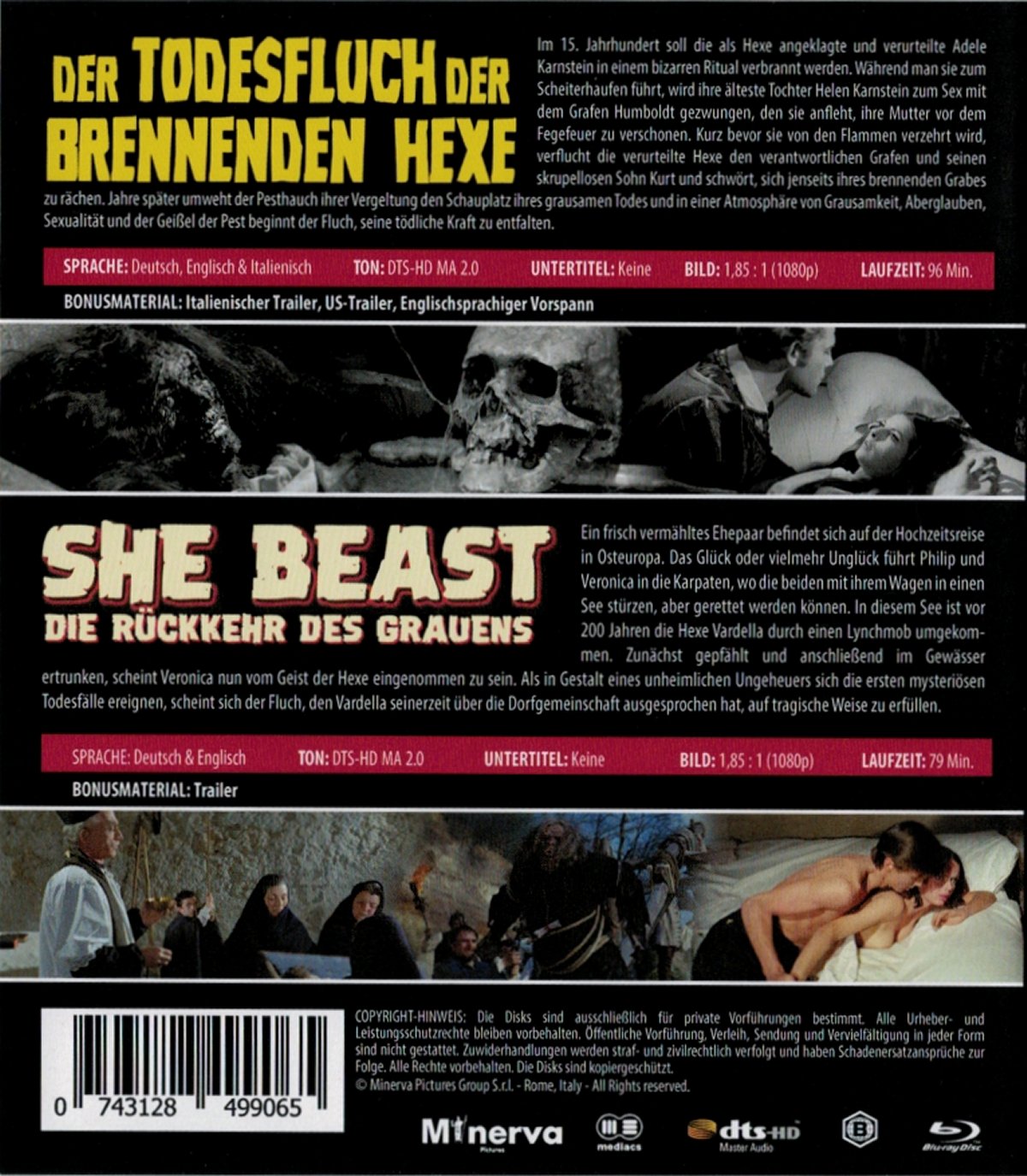 Neuauflage als "2 Filme Blu-ray Box" mit Wendecover ohne FSK-Logo. Als zweiter Film ist "She Beast - Die Rückkehr des Grauens" auf separater Disc enthalten.Im Besitz von 2 Benutzern.
