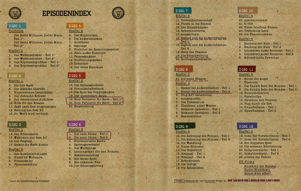 Auf Disc 9 befinden sich wie bereits beim "Sechs Millionen Dollar Mann" auf Disc 12 die TV-Filme. Hier liegen die ersten beiden allerdings in HD (1080p) vor (eventuell nur hochskaliert) und alle drei unterscheiden sich in ihrer Laufzeit um ein paar Sekunden.