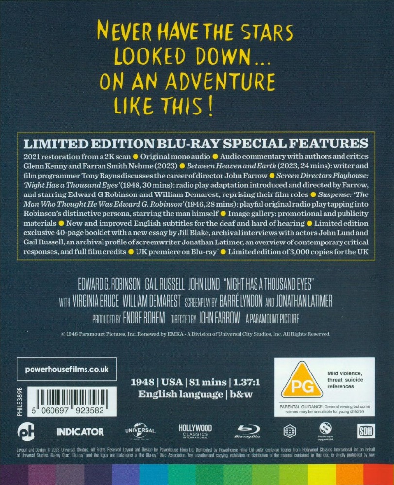 Based on a novel by Cornell Woolrich (Rear Window), Night Has a Thousand Eyes is a pioneering fusion of film noir and psychological horror.