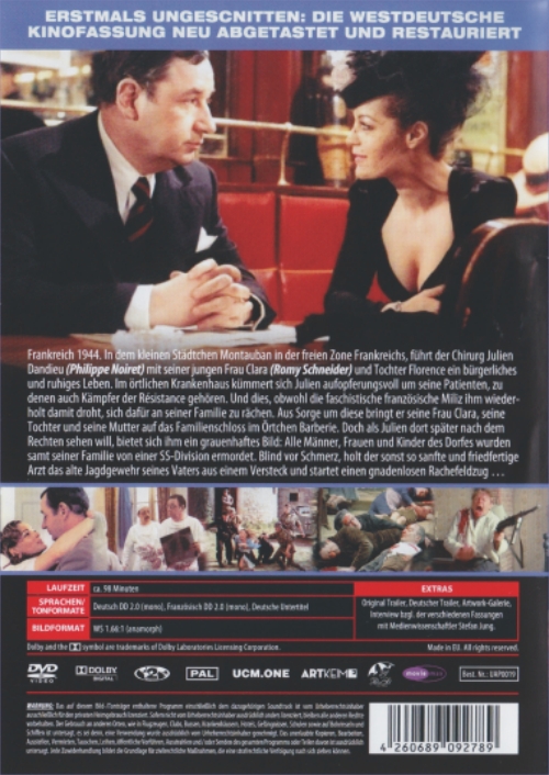 Leider ist nur die westdeutsche Synchronisation enthalten. Im Vergleich mit der BD von Studio Hamburg ist die Tonhöhe höher – also korrekter PAL-Speedup. Laut Cover wurde die westdeutsche Kinofassung neu abgetastet und restauriert. Tatsächlich hat man einfach die DDR-Kinofassung als Vorlage genommen und die alternative Szene der westdeutschen Kinofassung (von 50:24 Min. bis 52:36 Min.) eingefügt. Sowohl die DDR-Kinofassung als auch die alternative Szene stammen von der BD von Studio Hamburg, welche 2016 erschienen ist. Bildformat, Helligkeit und Farbgebung entsprechen der BD von Studio Hamburg. Der deutsche Vorspann wurde etwas verändert. So wird anstelle des Titels "Das alte Gewehr" (DDR-Kinofassung) der Titel "Abschied in der Nacht" eingeblendet. Auch der Hinweis auf die DEFA-Bearbeitung wurde entfernt. Ansonsten entsprechen die Credits der DDR-Kinofassung, was man an der Schriftart und der Gestaltung sehr schön erkennen kann.