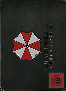 Das Umbrella-Logo und der Schriftzug auf der Vorderseite der Box sind geprägt. Das FSK-Logo ist ein leicht zu entfernender Aufkleber. Die technischen Informationen auf der Rückseite sind aufgeklebt und leicht abnehmbar. Darunter befindet sich ein aufgedrucktes Umbrella-Logo auf der Box.