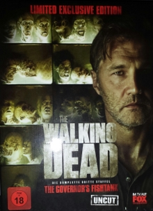 Beinhaltet eine hochwertige Nachbildung des Governour-Aquariums inkl. 5 Zombieköpfen, 2 Päckchen "Fleischfetzen" und dem 5-Disc-Digipack im Schuber, welches man im Rückteil des Aquariums verstauen kann. Man kann die beiden Tanks auch mit Wasser befüllen und die Köpfe anhand der eingebauten Lichter beleuchten lassen. Die dafür nötigen 4 AAA-Batterien sind nicht enthalten.