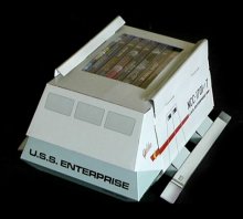 Die Box selbst besteht aus fester Pappe und besitzt die Optik eines Galileo-Transportshuttles, wie es in den ersten Star Trek-Filmen zu sehen ist.