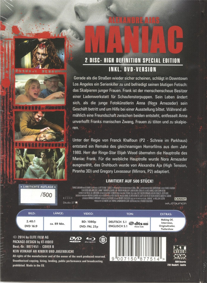 * Während bei der DVD-Fassung das Vorwort von William Lustig gesondet vor dem Film beginnt, ist dies bei der Blu-ray Fassung in die Gesamtlaufzeit eingefügt. Aus diesem Grund habe ich eine andere Laufzeitangabe eingetragen.