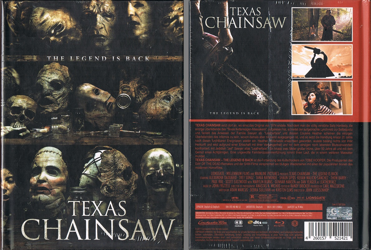 Blick hinter die Kulissen (3:30 Min.) Das Texas Chainsaw Vermächtnis (6:48 Min.)** Der alte Bauernhof (14:51 Min.)** Die Wiederauferstehung der Säge (9:15 Min.)** Besetzungs-Terror (12:20 Min.)** Leatherface 2013 (14:54 Min.)** Licht, Kamera, Massaker! (11:33 Min.)** Es steckt im Fleisch (7:51 Min.)** Kurzberichte vom Set (33:13 Min.)** Alternativer Anfang (3:23 Min.)** Originaltrailer in Deutsch (2:29 Min.) Originaltrailer in Englisch (2:26 Min.) Unsere DVD/Blu-ray-Empfehlung: Better Watch out (2:05 Min.) Trailershow (4 dt. Trailer) zu: Resident Evil - Retribution (2:07 Min.) Shootout - keine Gnade (1:46 Min.) Freelancers (2:26 Min.) Scary Movie 5 (2:10 Min.)