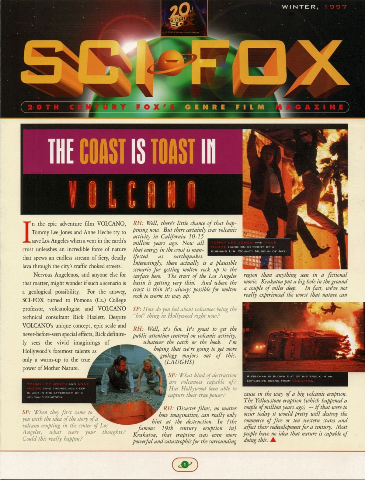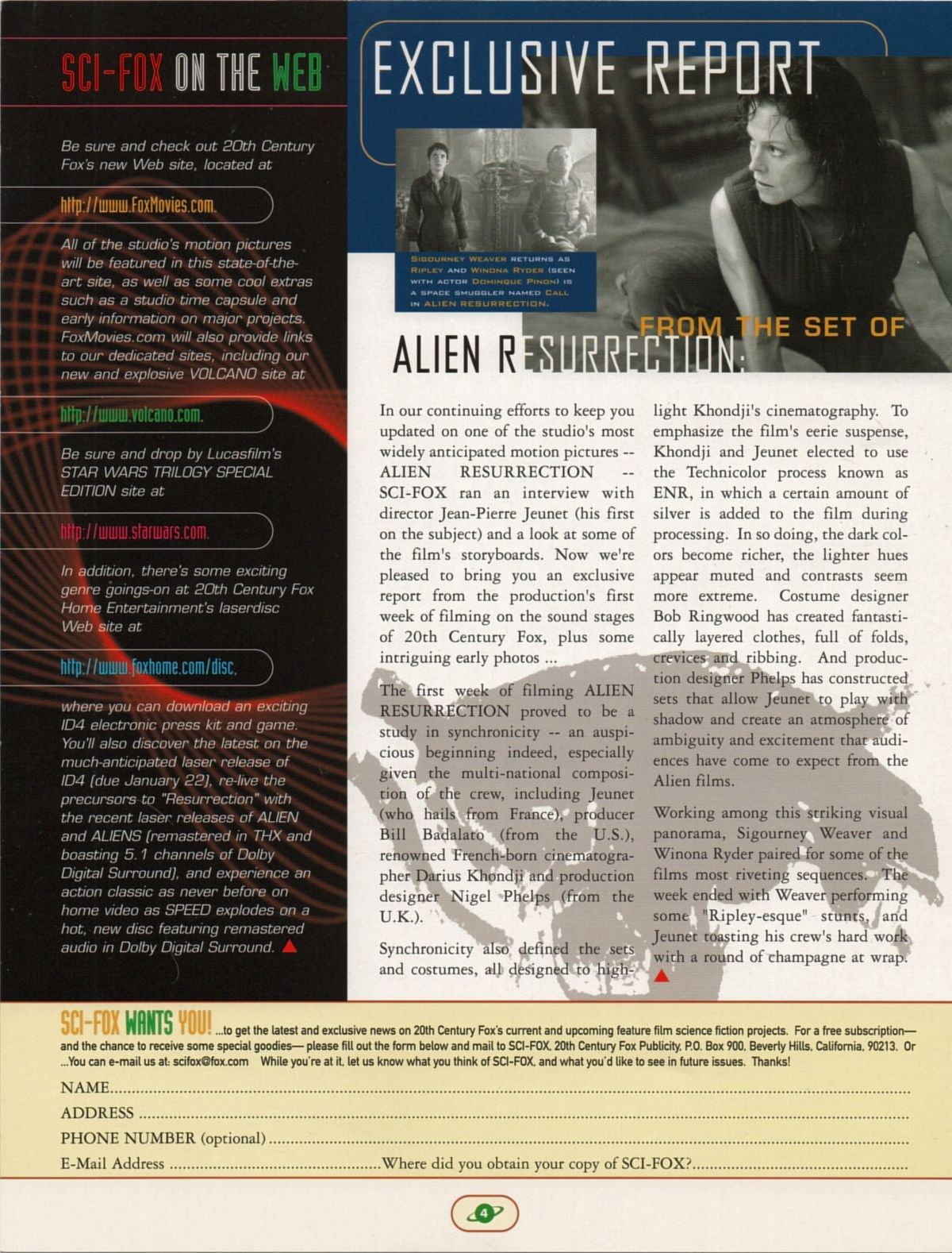 Die Ausgabe "Winter 1997" des Magazins Sci-Fox mit Fotos, Infos und Interviews zu Volcano, Speed 2 und Alien Resurrection, sowie eine Seite, auf der George Lucas einige der Änderungen erläutert, die er für die (damals) bevorstehende Wiederaufführung der Star Wars-Trilogie im Kino vorgenommen hat.