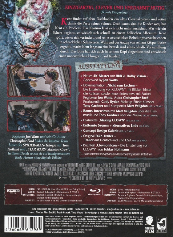 Deutschsprachige 4K Erstveröffentlichung in limitierten Mediabooks. Wie bei Turbine üblich befindet sich der Aufkleber auf der Vorderseite auf der Außenfolie und die technischen Daten befinden sich auf der Rückseite auf einem losen Blatt.