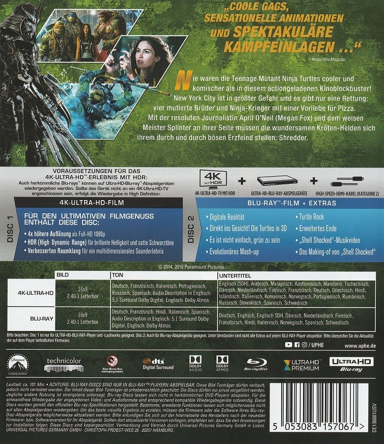 Die Daten der Blu-ray sind inhaltlich identisch mit der Einzelveröffentlichung von Paramount.
