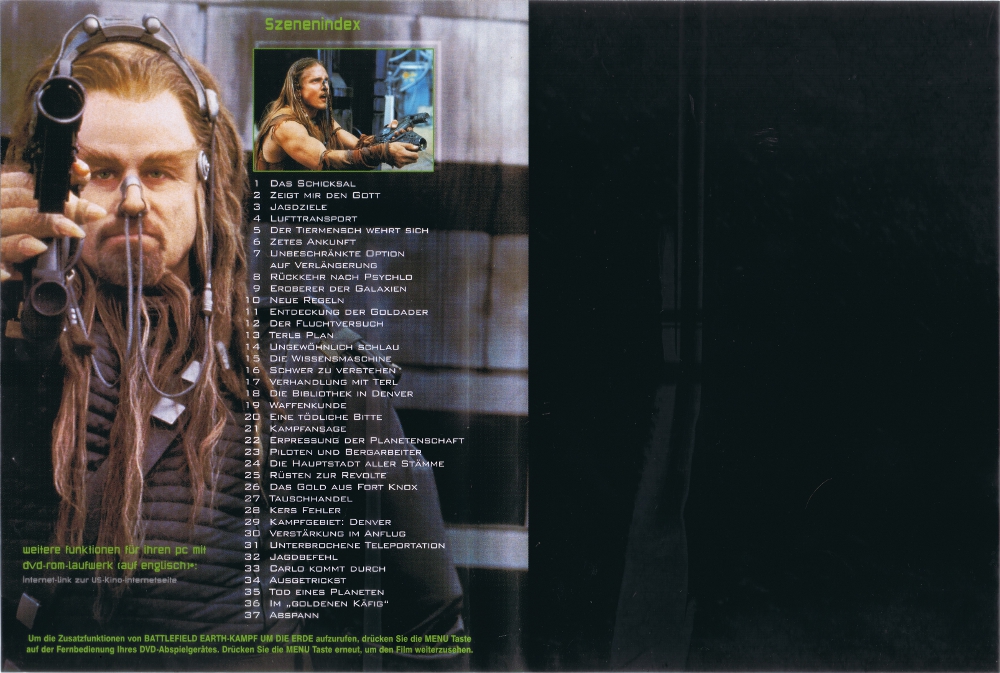 - Original-Kommentar mit Regisseur Roger Christian und dem künstlerischen Gestalter Patrick Tatopoulos (Während des Films erscheint an 14 Stellen ein "Psychlo"-Symbol. Drückt man dann die Enter-Taste so erhält man zusätzliche Szenen von den Dreharbeiten. Zu finden ist das Symbol an folgende Stellen : ) (6 Min. 42 Sek.)