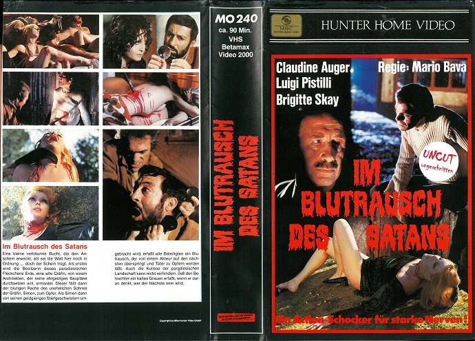 "Im Blutrausch des Satans" ist in den 80er Jahren auch noch mal im großen schwarzen Einleger von Mike Hunter/Mondial erschienen. Die Auflage ist identisch zu den beiden anderen Auflagen. Hier kommt aber ganz am Anfang noch ein Werbefilm für TDK Videokassetten. Der "Hunter Home Video" Schriftzug auf dem Front-Cover ist nur aufgeklebt. Darunter steht "Universal Home Video".