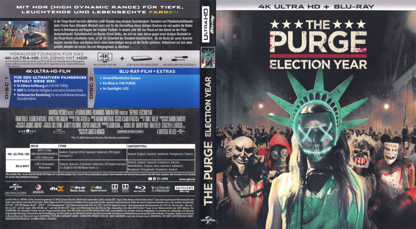 UHD, Blu-ray und ein nicht mehr einlösbarer Digitalcode im Amaray. Das Amaray mit Wendecover steckt in einem Pappschuber (O-Ring), auf den das FSK-Logo aufgeklebt ist. Es handelt sich um ein Repack der Blu-ray von 2017 und der UHD von 2017.