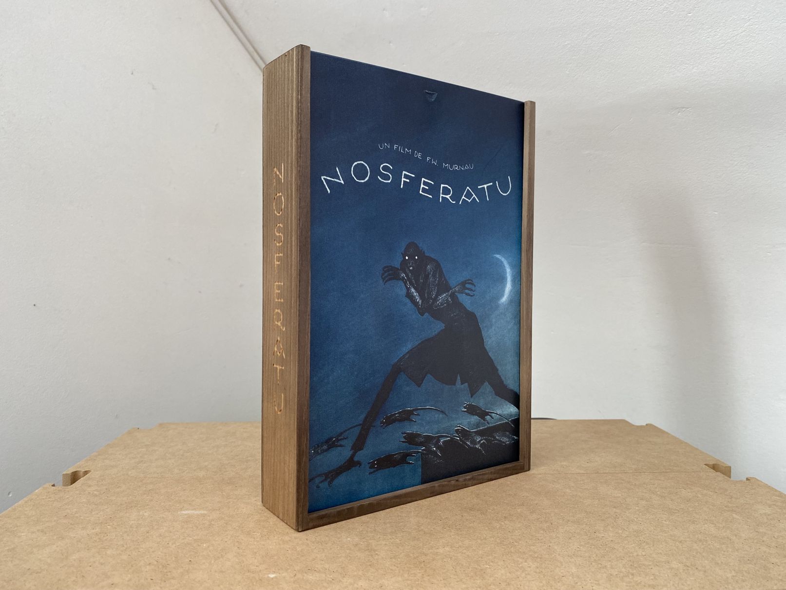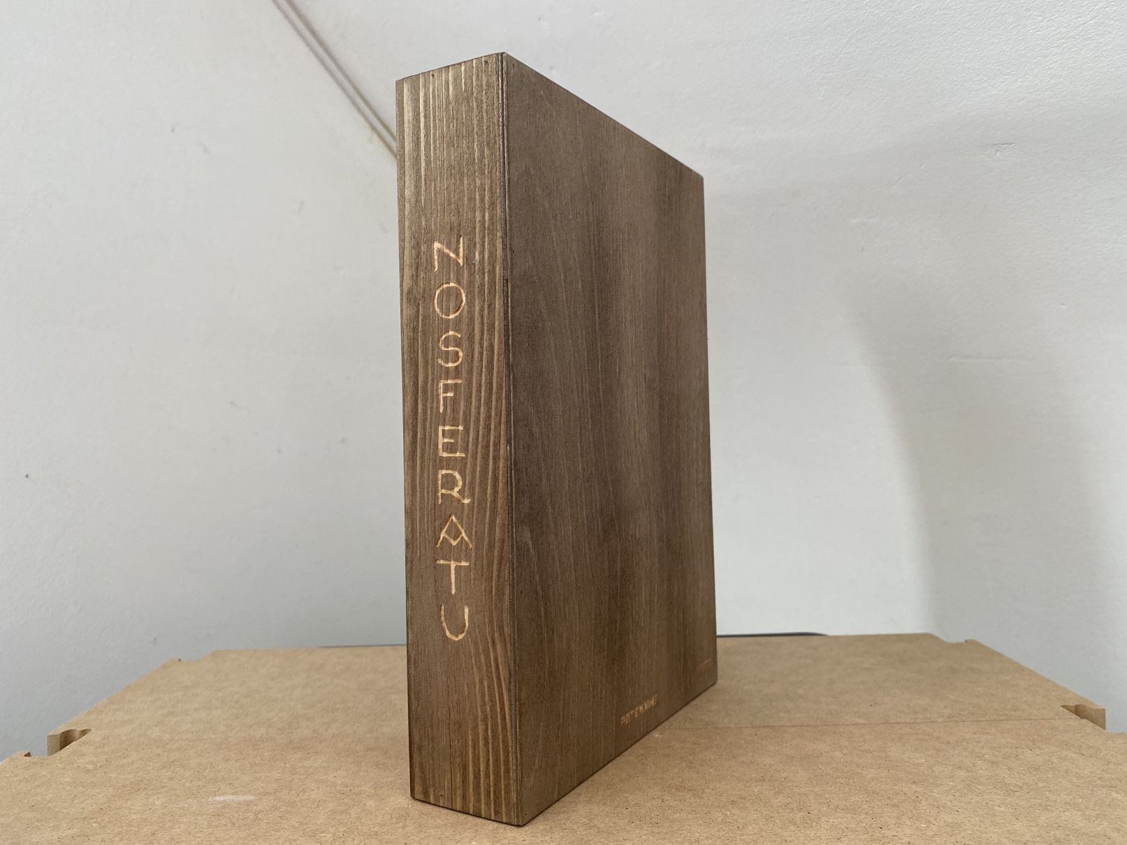 Der Filmtitel auf dem Rücken der Holzbox ist ebenfalls eingraviert.