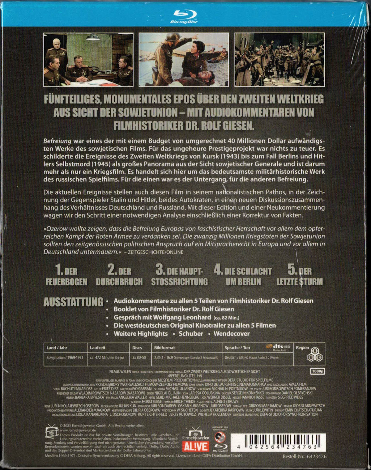 Enthält auf 3 Blu-ray's alle 5 Teile des Epos im Amaray mit Schuber. Der angeblich in DTS-HD MA vorliegende Ton wird nur als Dolby Digital erkannt.