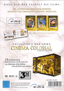 In der limitierten "Roma-Box" aus der Cinema Colossal Reihe zusammen mit: "Der Sohn von Cäsar und Cleopatra" und "Messalina".1 Angebote ab 25,00 EUR