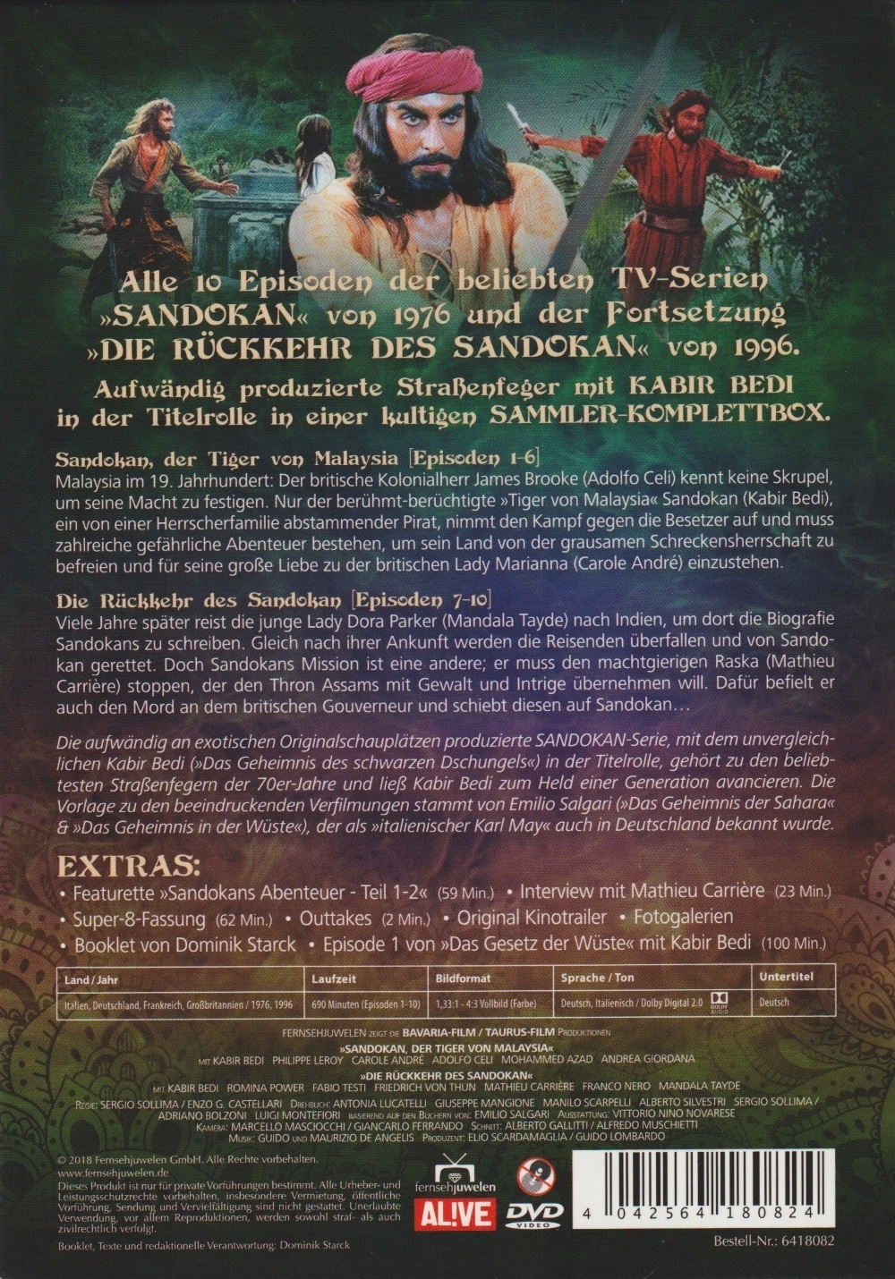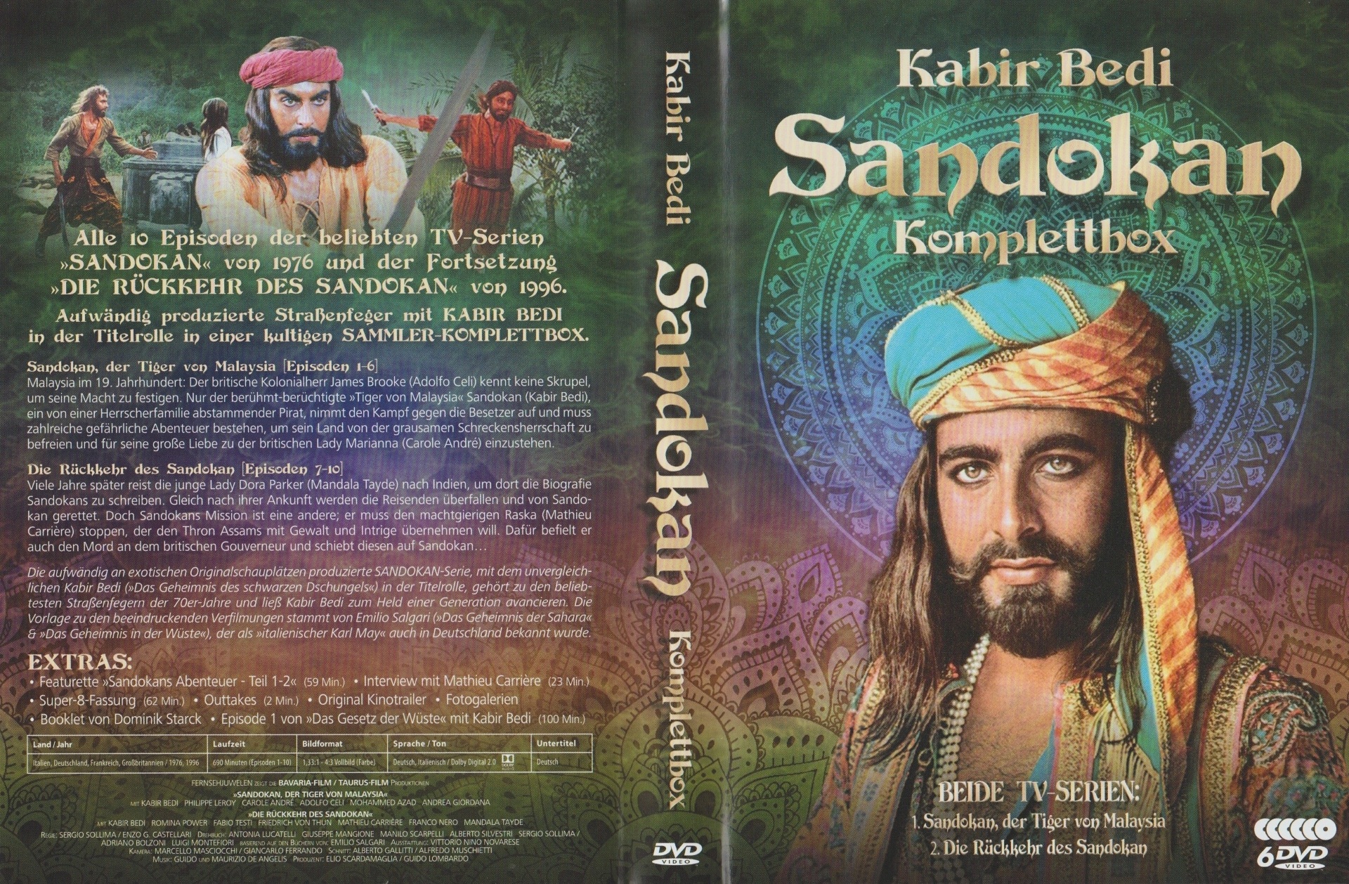 6-DVD Amaray im Schuber: DVD 1-3: Sandokan, der Tiger von Malaysia, DVD 3-6: Die Rückkehr des Sandokan