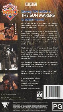 *Die Dr. Who Folge "The Sun Makers" lief im englischen TV als 4 Teiler. Diese 4 Teile sind hintereinander auf der Cassette und jeweils mit Abspann.Im Besitz von 1 Benutzern.
