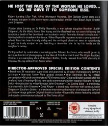 "Scalpel is presented on this release in two different visual grades, both from the same restored materials. Director of photgraphy Edward Lachman shot the film with a "Southern Gothic" look in mind, with strong warm yellow and green tones. Edward Lachman supervised and approved the grading for this version. The second version, the "Arrow Grade", presents the film in a more traditional look, and is included here for comparative purposes."