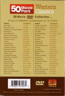 1.Rollin' Plains 2.Sing Cowboy Sing 3.The Mystery of the Hooded Horsemen 4.Arizona Days 5.Song of the Gringo 6.Round-Up Time in Texas 7.Springtime in the Rockies 8.The Carson City Kid 9.Colorado 10.Young Bill Hickok 11.Phantom Rancher 12.Broadway to Cheyenne 13.Stagecoach to Denver 14.Angel and the Badman 15.Paroled - To Die 16.The Oklahoma Cyclone 17.Daniel Boone, Trail Blazer 18.Kentucky Rifle 19.American Empire 20.Billy the Kid Trapped 21.Vengeance Valley 22.The Sundowners 23.Man of the Frontier 24.Riders of the Whistling Pines 25.Painted Desert 26 Gunfight at Red Sands 27.China 7, Liberty 37 28.Gone with the West 29.The Outlaw 30.Arizona Stagecoach 31.Blue Steel 32.Santa Fe Trail 33.McLintock 34.Sagebrush Trail 35.In Old Caliente 36.Rough Riders Round-Up 37.Hell Town 38.The Kansan 39.White Comanche 40.Mohawk 41.Sheriff of Tombstone 42.Judge Priest 43.The Grand Duel 44.It Can Be Done Amigo 45.Abilene Town 46.7th Cavalry 47.My Pal Trigger 48.Cowboy and the Senorita 49.Bells of San Angelo 50.Under California Stars