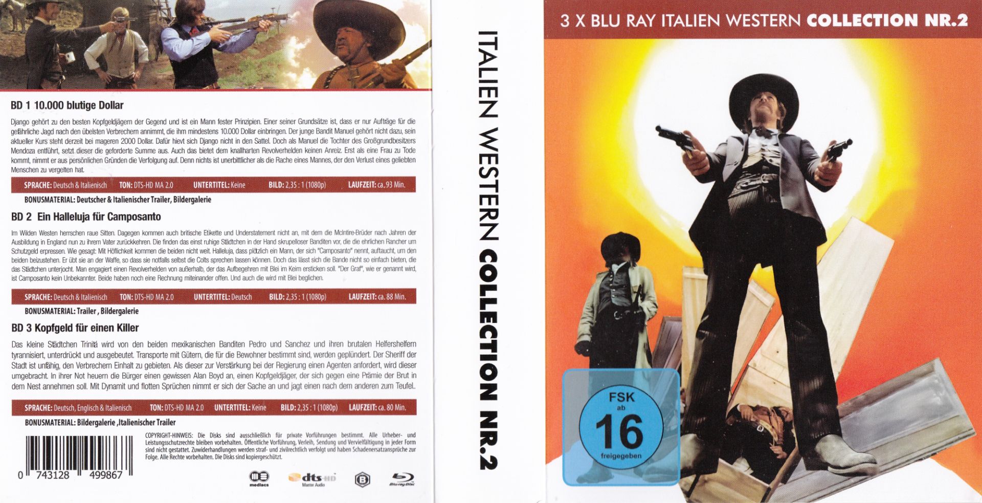 Auch zusammen mit Kopfgeld für einen Killer und 10.000 blutige Dollar im Set als "Italien Western Collection Nr. 2" erhältlich, enthält die 3 Einzel-Amarays mit Pappmanschette. (EAN 0743128499867).