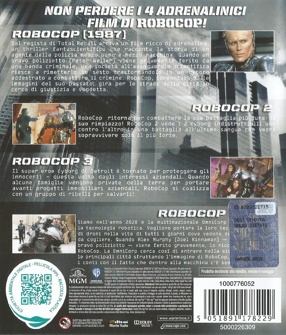 Die Blu-rays von Teil 1 bis 3 entsprechen jener aus der RoboCop Collection von MGM / 20th Century Fox. Diese haben alle eine deutsche Tonspur. Beim Remake hingegen fehlt die deutsche Synchronfassung.Im Besitz von 1 Benutzern.