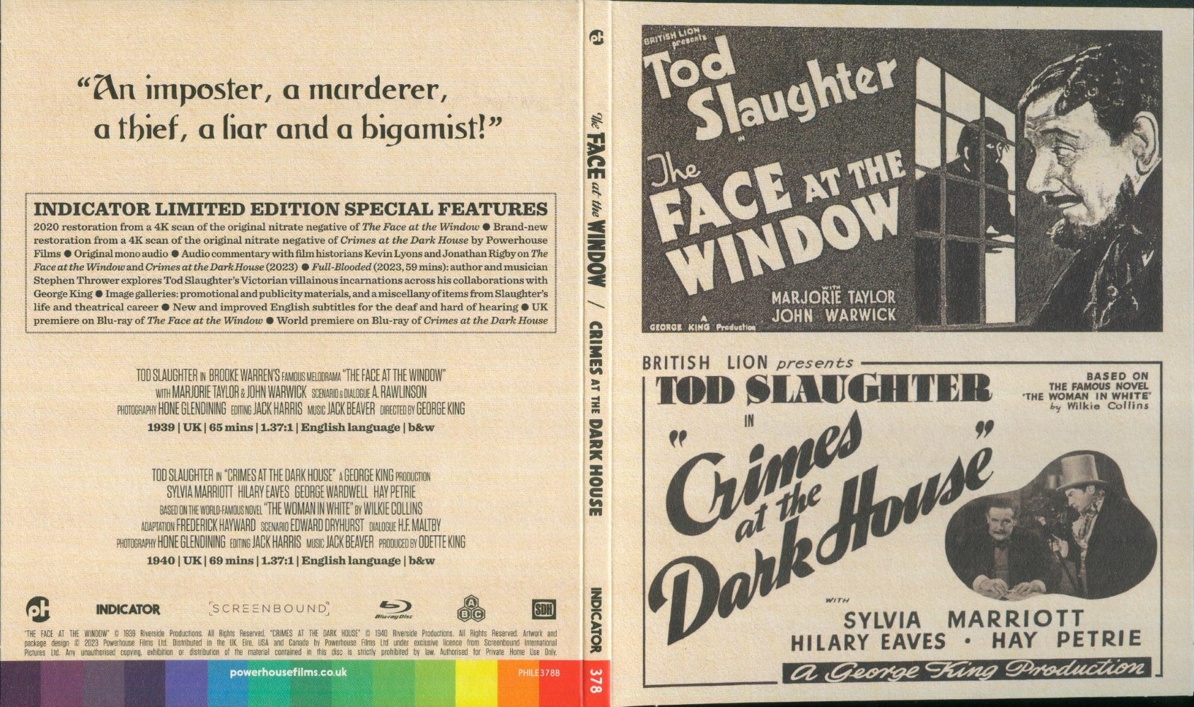 Unlike his contemporaries, such as Boris Karloff and Charles Laughton, Tod Slaughter never left his native shores. Instead, he chose to make his mark in Britain by transferring his most sensational theatrical performances to the screen. Portraying every kind of cruel and cunning criminal – from petty thief to mass murderer – he became the first great villain of British horror, at a time before the Grand Guignol of Hammer Films began to take hold, without once donning monster make-up.