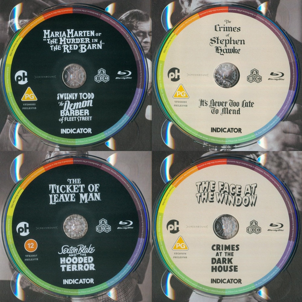 Neue 2023er 4K-Scans der Original-Negative von "Maria Marten or The Murder in the Red Barn", "Sweeney Todd: The Demon Barber of Fleet Street", "The Crimes of Stephen Hawke", "It's Never Too Late to Mend", "The Ticket of Leave Man" und "Crimes at the Dark House" durch Powerhouse, neuer 2023er 4K-Scan des Dupe-Positivs von "Sexton Blake and the Hooded Terror" durch Powerhouse sowie die 2020er-4K-Restauration des Negativs von "The Face at the Window".