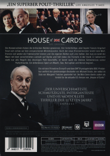 Unter dem Titel "House of Cards - Das Original" und dem Label "Die komplette erste Mini-Serie" als Doppel-DVD, in einer 2-Disc-Amaray, im rechts offenen Pappschuber erschienen.Im Besitz von 9 Benutzern.