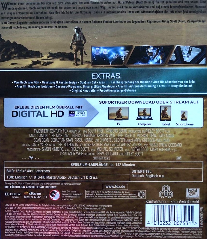 Im Bonusmaterial der Blu-ray Disc "Der Marsianer - Rettet Mark Watney" enthalten.