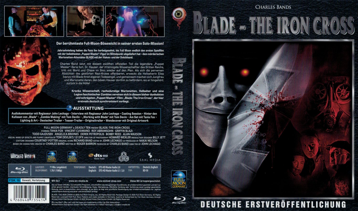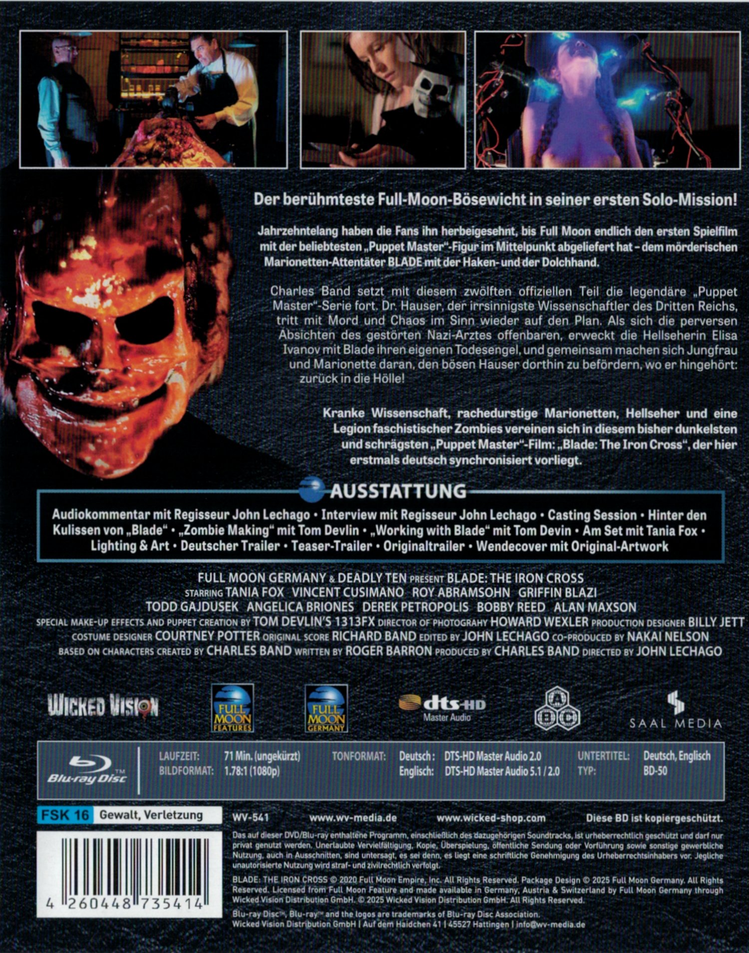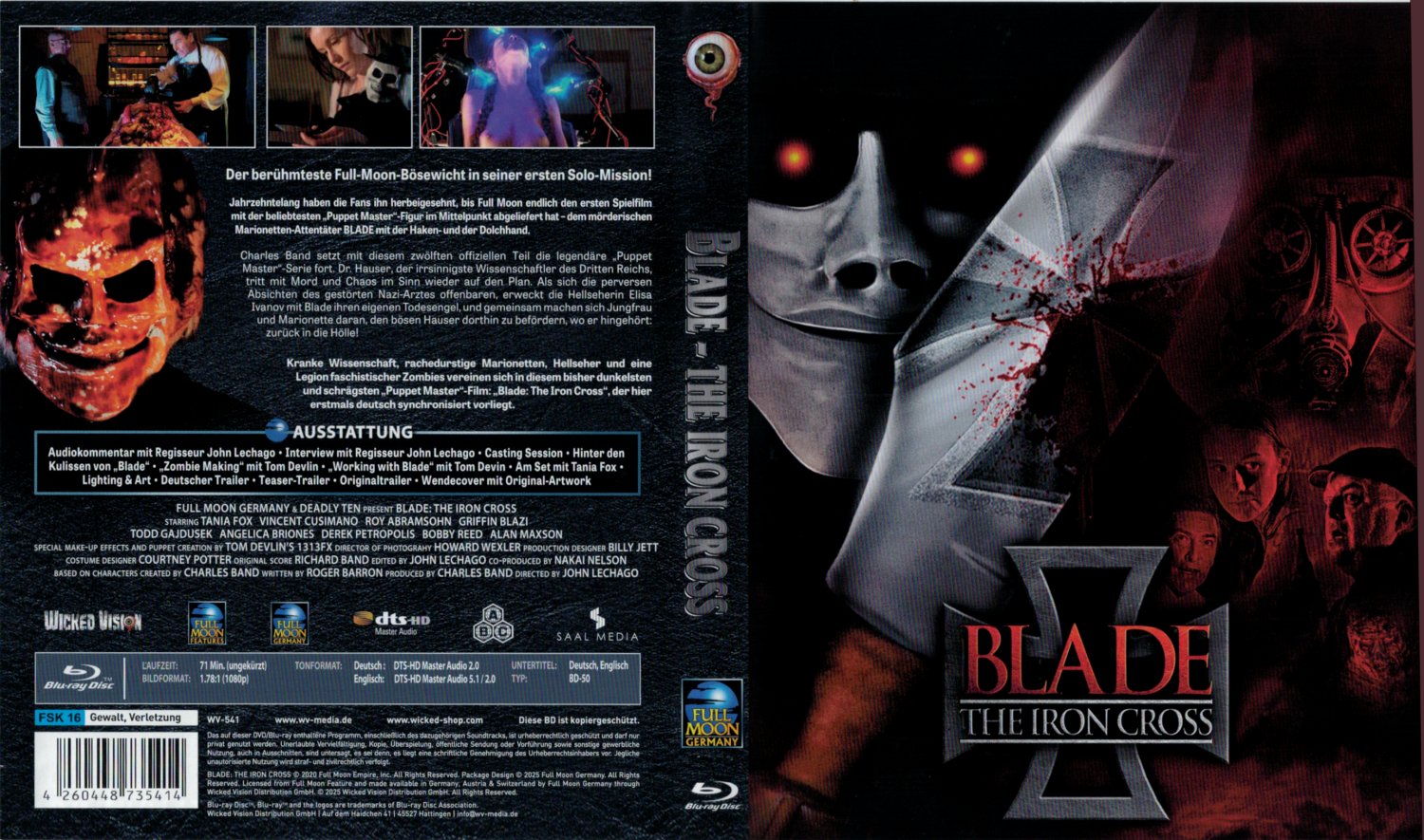 Disc startet mit Wicked Vision / Full Moon Germany-Logos sowie Rechte- ("oder sonst gewerblich nutzt dem wird Blade die Kehle aufschlitzen") und FSK-Hinweisen.