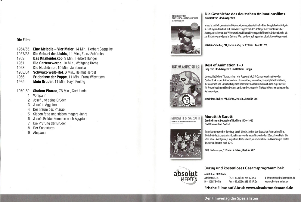 Der Film befindet sich mit mehreren Kurzfilmen auf der vierten DVD aus der Reihe "Geschichte des deutschen Animationsfilms". Kuratiert ist diese Edition von Ulrich Wiegenast. Der Vertrieb der DVD übernimmt die Al!ve AG.