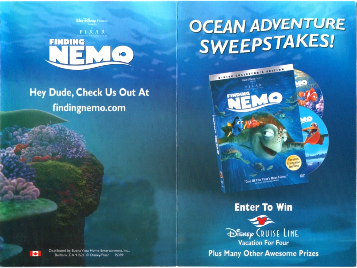 Easter Egg 3: Im Menü "Bonus Features" - Den oberen Teil der lila Pflanze auf der rechten Seite auswählen. Es erscheint ein Fisch-Symbol. Hier verbirgt sich ein Werbespot für den fiktiven "Aqua Scum 2003"-Aquariumfilter (0:34 Min.).