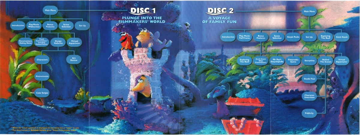Easter Egg 2: Im Menü "Visual Commentary" zur Koralle auf der linken Seite gehen. Es erscheint ein Fisch-Symbol. Hier verbirgt sich ein kurzer Clip mit Dory (0:14 Min.).