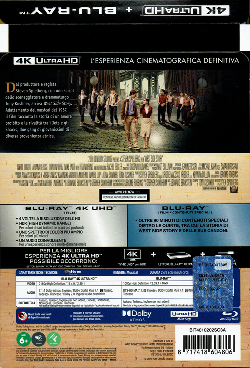 4K Ultra HD Blu-ray und Blu-ray Disc im Vertrieb von The Walt Disney Company Italia. Das Steelbook befindet sich in einem für Disney typischen "Halbschuber", auf dem die technischen Angaben aufgedruckt sind. Das Steelbook ist limitiert, es fehlen aber Angaben zur Limiterungszahl und -nummer. Ein Innendruck ist vorhanden. Inhaltlich müssten die Discs identisch zur deutschen Version sein.