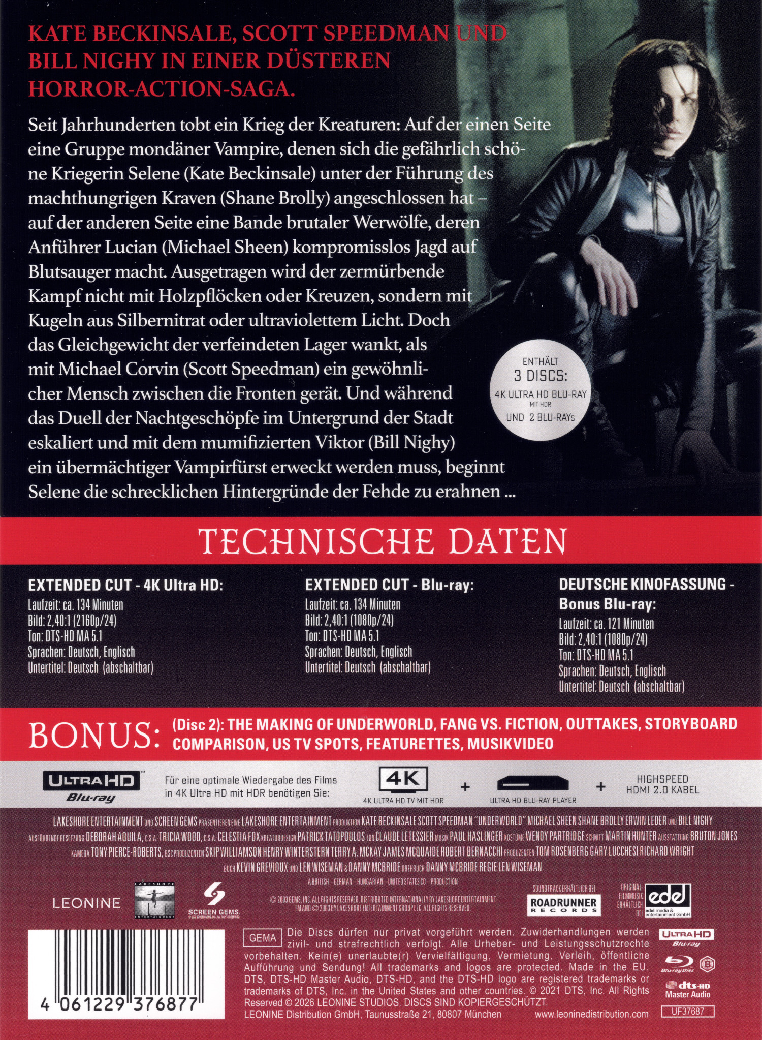 Die Discs haben kein Kapitelmenü. Die Kinofassung ist ab 16 Jahren freigegeben.