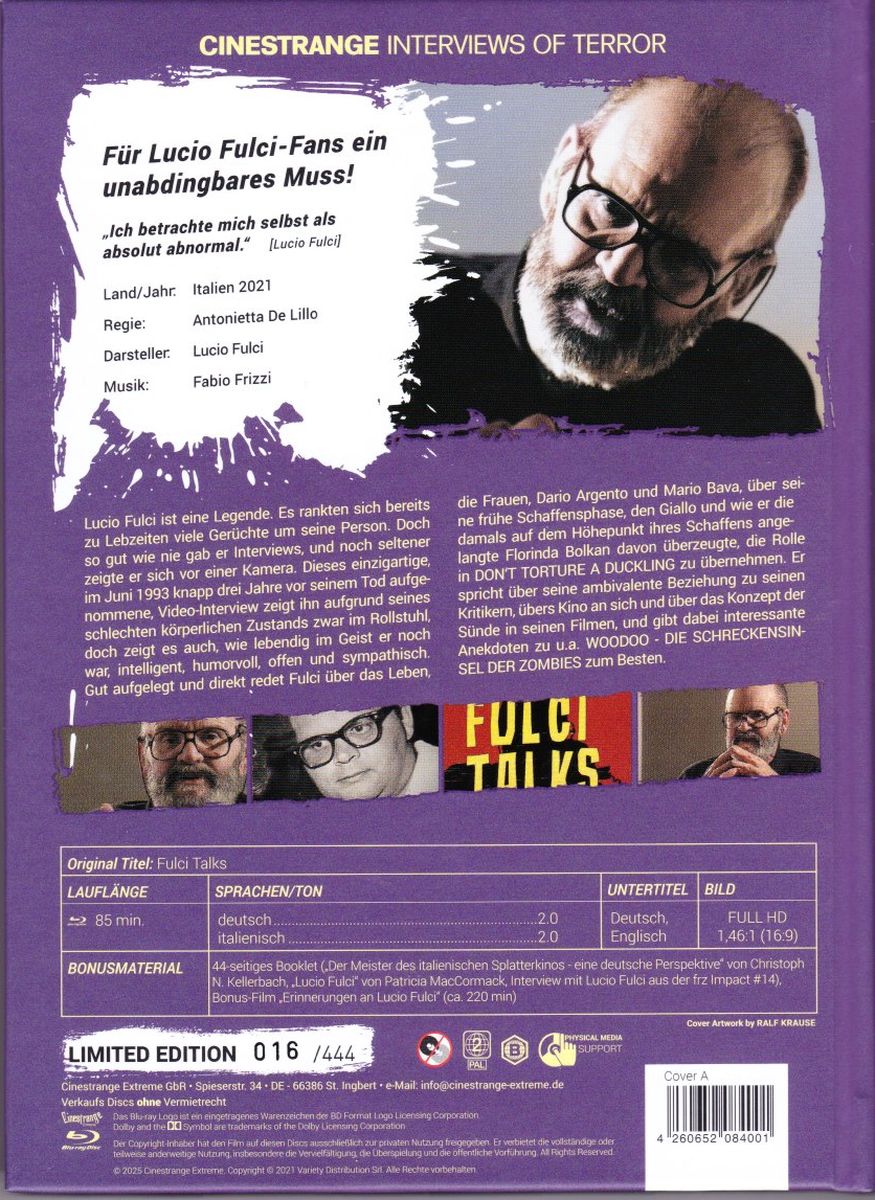 Erinnerungen an Lucio Fulci (231:23 Min./ englisch bzw. italienisch/ deutsche UT optional). Interviews mit ca.80 Personen über Lucio Fulci: u.a.Zora Kerova, Brett Halsey, Giovanni Lombardo Radice, Venantino Venantini, Carlo De Mejo, Catriona MacColl, Cinzia Monreale, Umberto Lenzi, Gino De Rossi, Lamberto Bava, Ruggero Deodato, Riz Ortolani, Fabio Frizzi, Michele Soavi, Corinne Clery, Bruno Mattei u.v.m.